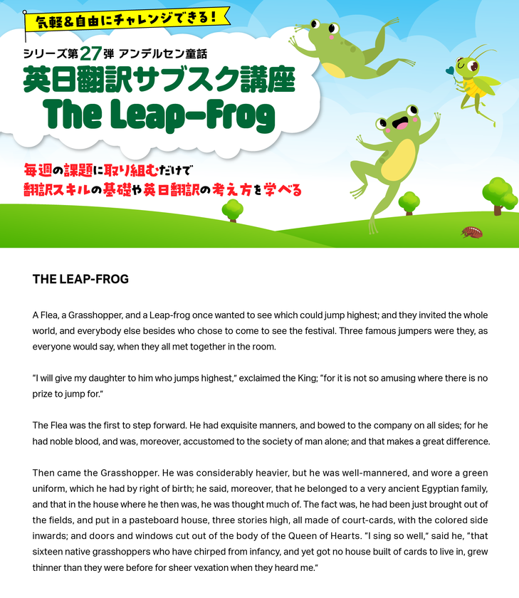 - 英日翻訳サブスク講座 The Leap-Frog by Hans Christian Andersen