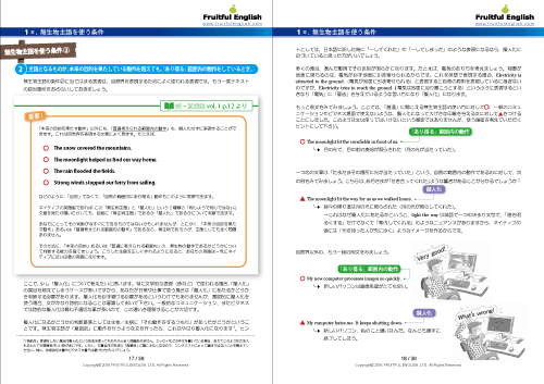 1冊目のテキストの20ページを使って、英語では一般的で日本語ではあまり使わない「無生物主語」の選び方について理解を深めます。